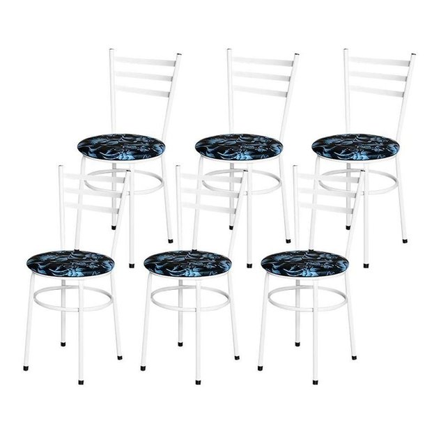 Conjunto 6 Cadeiras Epóxi Branca Para Cozinha Assento Estampado Floral Preto