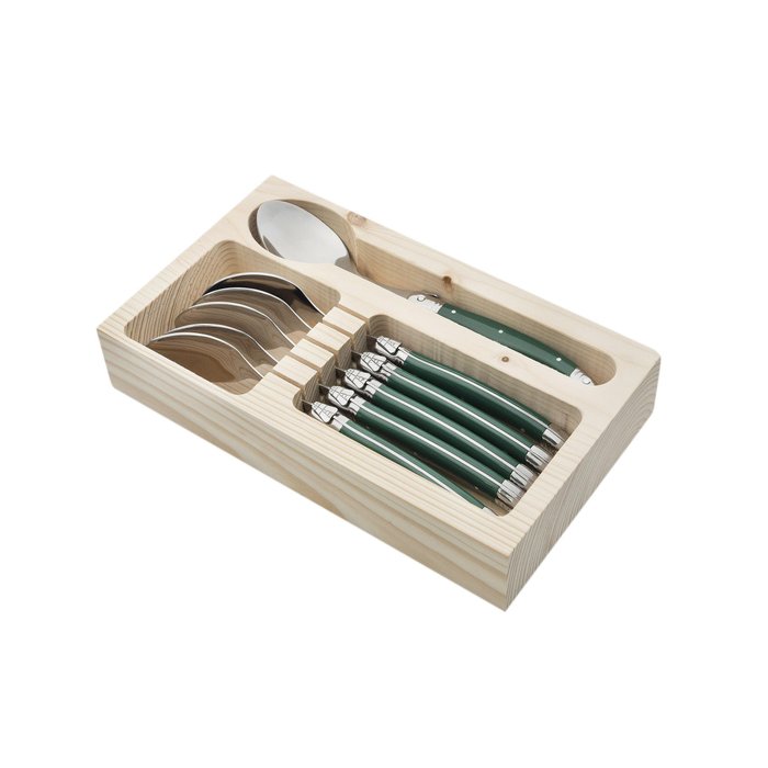 Conjunto 6 Colheres Laguiole Em Bandeja De Madeira Verde Verde