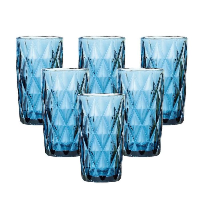 Conjunto 6 Copos Diamond 330 ml Azul em Vidro - Lyor Design