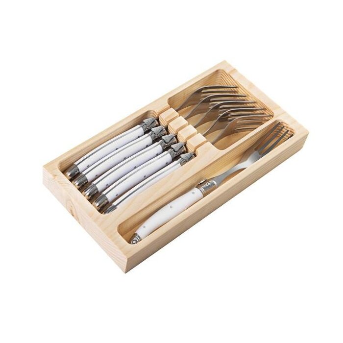 Conjunto 6 Garfos Laguiole Luxo Em Bandeja De Madeira Branco Branco