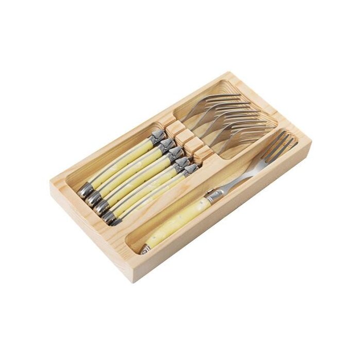 Conjunto 6 Garfos Laguiole Luxo Em Bandeja De Madeira Marfim MARFIM