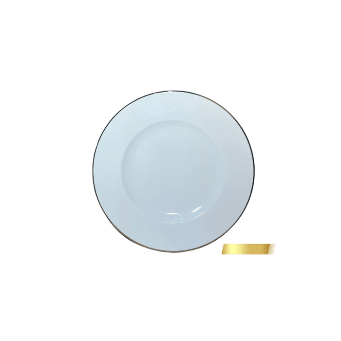 Conjunto 6 Prato Raso Tramontina Filete Ouro Dourado Porcelana Branca
