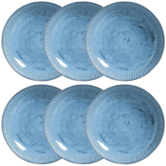 Conjunto 6 Pratos Fundos Cerâmica Azul 830ml Linhas Breeze Porto Brasil Massa Sopa Jantar.