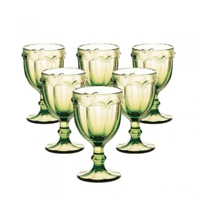 Conjunto 6 Taças para Água de Vidro Borboleta Verde 260ml Rojemac Verde