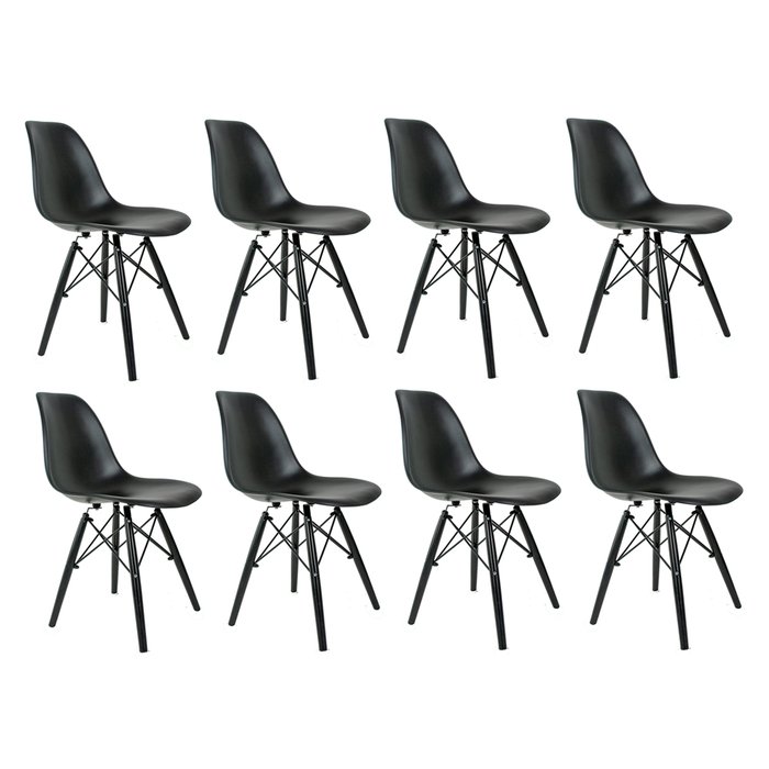 CONJUNTO 8 CADEIRAS EAMES PP PRETA PÉS EM POLIPROPILENO