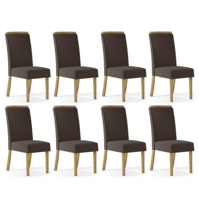 Conjunto 8 Cadeiras Ester Nature/Marrom Expesso - Móveis Henn