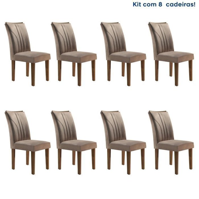 Conjunto 8 Cadeiras Estofadas Laguna Chocolate/ Cinza