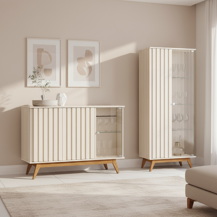 Conjunto Açaí Ripado de Cristaleira e Buffet 3 Portas Pérola