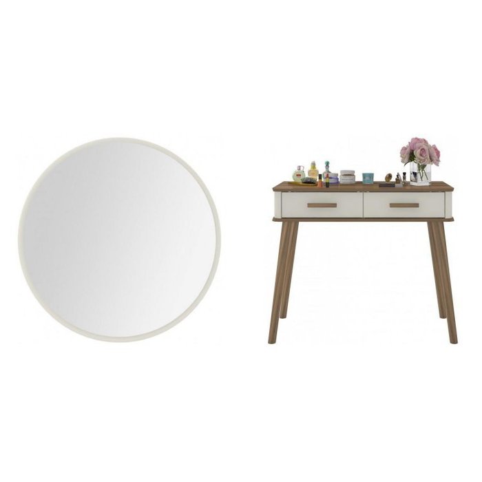 Conjunto Aparador 2 Gavetas e Espelho Redondo Maitê Fabrimóveis Freijó/Offwhite