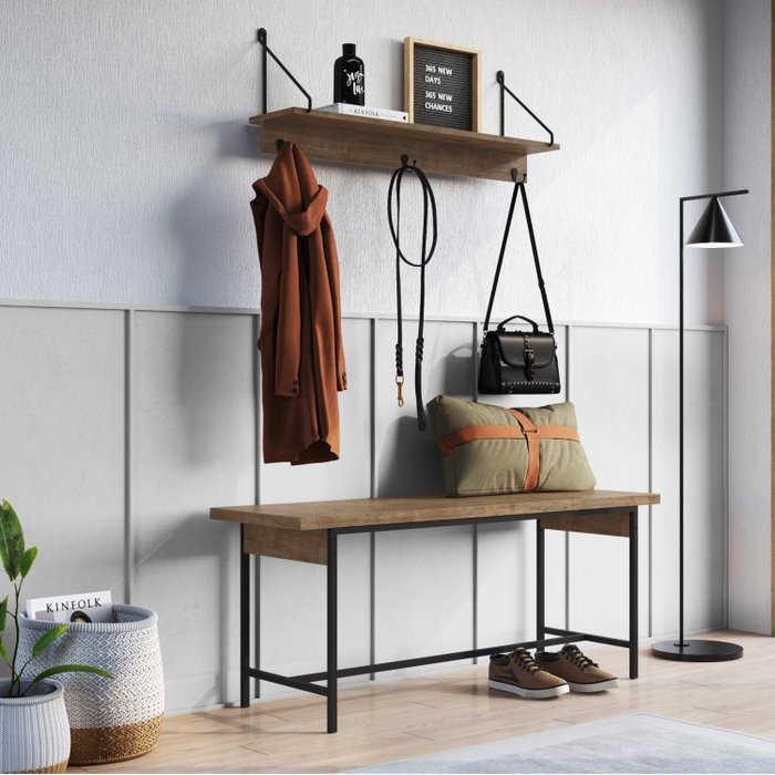 Conjunto Aparador Decorativo com Banco Multiuso Industrial
