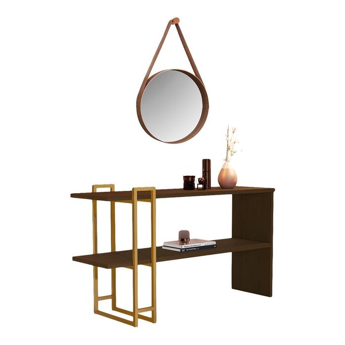 Conjunto Aparador e Espelho com Alça Liverpool Dourado Castanho Canela Dourado Castanheira