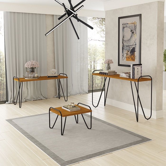 Conjunto Aparador Mesa Lateral e Mesa de Centro Gênova em MDF Luapa