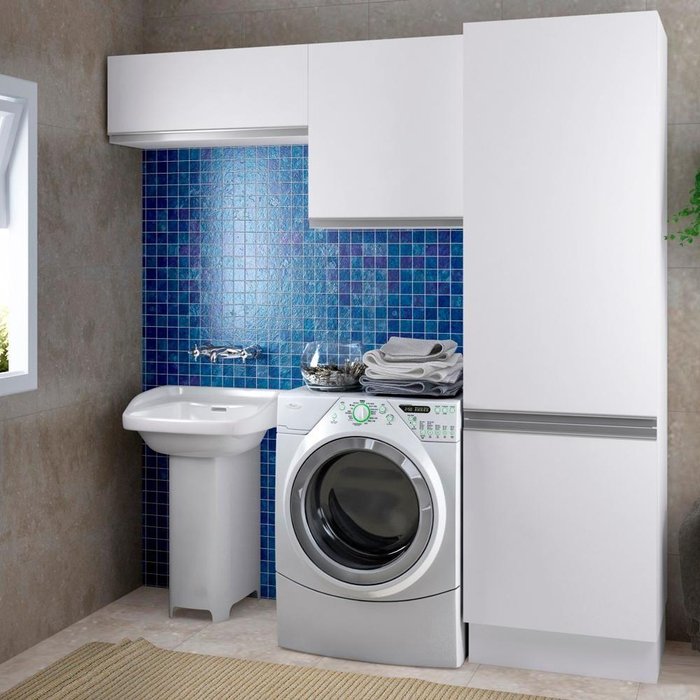 Conjunto Área Serviço 2 Armários e 1 Torre em MDF Madesa Branco