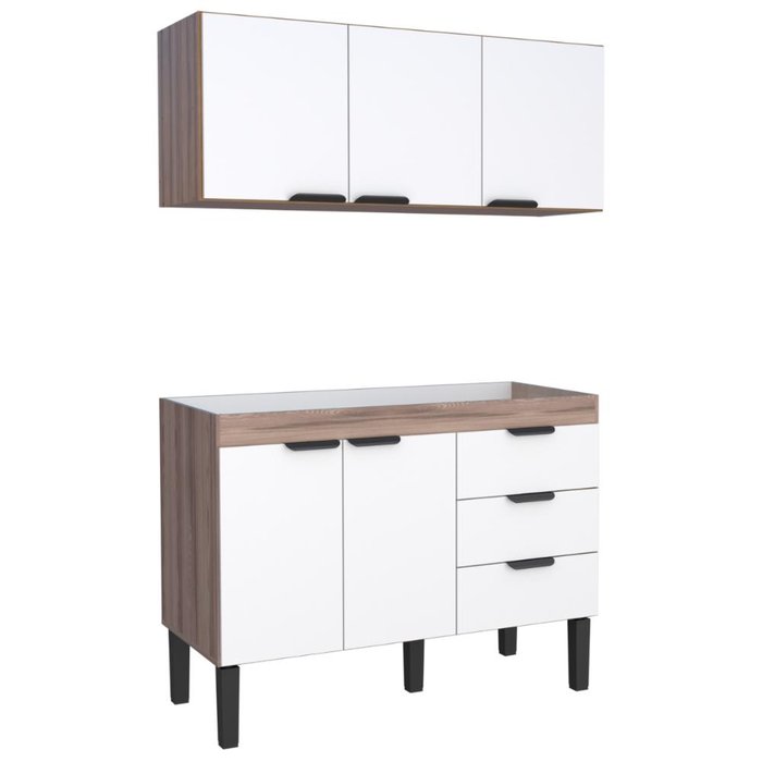 Conjunto Armário Aéreo e Balcão Bujaru Tamarindo Branco Tamarindo/ Branco