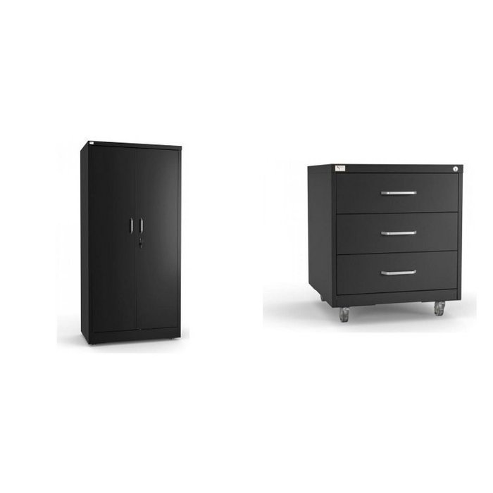 Conjunto Armário Alto e Gaveteiro 3 Gavetas de Aço Isma Preto