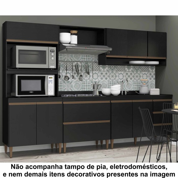 Conjunto Armários de Cozinha Modulada 5 Peças 2,80m Cj30-022 Semplicitá Móveis Semplicità Móveis Avelã com portas brancas e puxadores/pés cinza, ou preto com puxadores e pés na cor bronze