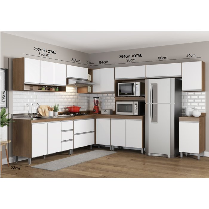 | Medida de Cada Item (A x L x P) (novo) | - 01 Armário de Cozinha Balcão para Pia 1,20m sem tampo Linha Harmonia 03.0449 (20 x 52 x 88 cm) - 01 Armário de Cozinha Aéreo 1,20m 3 portas Linha Harmonia 03.0451 (20 x 52 x 88 cm) - 01 Armário de Cozinha Balcão para Cooktop 80cm com 2 Gavetões Linha Harmonia 03.0454 (20 x 52 x 88 cm) - 02 Armário de Cozinha Aéreo Basculante 80cm Linha Harmonia 03.0455 (20 x 52 x 88 cm) - 01 Armário de Cozinha Balcão de Canto 94x52cm Linha Harmonia 03.0459 Semplicitá Movéis (20 x 52 x 88 cm) - 01 Armário de Cozinha Aéreo de Canto 94x52cm Linha Harmonia 03.0460 (20 x 52 x 88 cm) - 01 Armário de Cozinha Torre para 2 Fornos Linha Harmonia 03.0453 (20 x 52 x 88 cm) - 01 Armário de Cozinha Balcão 40cm com tampo Linha Harmonia 03.0457 (20 x 52 x 88 cm) - 01 Armário de Cozinha Aéreo 40cm 1 Porta Linha Harmonia 03.0458 Semplicitá Móveis (20 x 52 x 88 cm) - NÃO INCLUI TAMPO DE PIA |