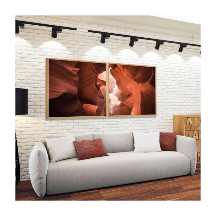 Quadros com moldura laminada na cor carvalho, imagem formação rochosa, erosão do solo.
