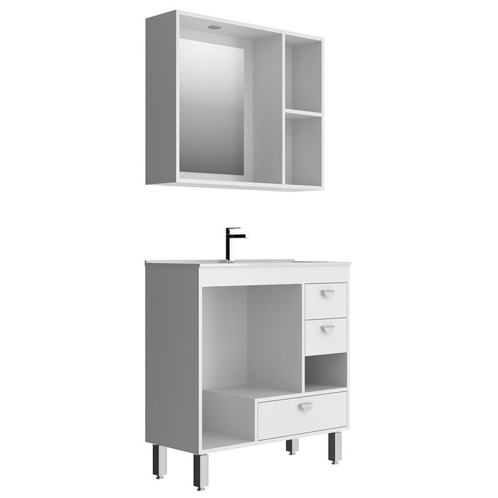 Conjunto Balcão Montado p/ Banheiro c/ Espelho Duna 80 Nude Belizze