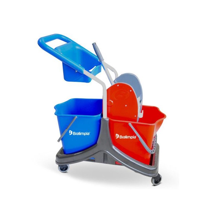 Conjunto de baldes com cavalete e espremedor para limpeza de pisos frios em geral.