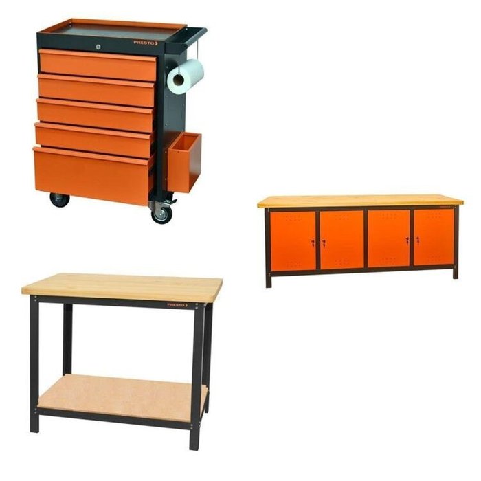 Conjunto Bancada para Ferramentas 200cm Carro de Ferramentas Profissional 5 Gavetas Presto Laranja