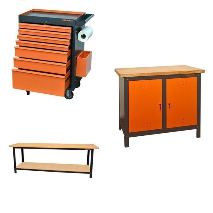 Conjunto Bancada para Ferramentas 200cm Carro de Ferramentas Profissional 7 Gavetas Presto Laranja