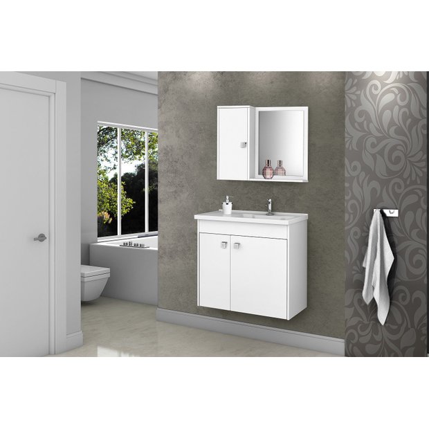 Conjunto Banheiro Munique Bechara Kit Gabinete com 2 Portas e Cuba e Armário com Espelho Branco Branca