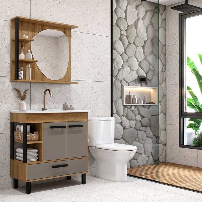 Transforme seu banheiro com o Conjunto Napoli, uma combinação perfeita de elegância, praticidade e amplo espaço interno. O grande destaque fica por conta do espelho em formato orgânico, um detalhe sofisticado que adiciona modernidade e estilo ao ambiente.
