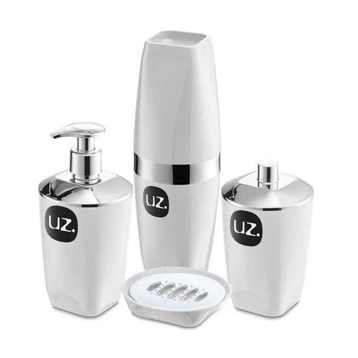 Banheiro tem que estar limpo e organizado, para isso precisamos de um kit para nos ajudar a manter tudo em ordem facilitando nosso dia a dia. Dando um toque decorativo a pia ou bancada, o conjunto é fabricado com plástico resistente. Composto por saboneteira líquida com válvula, porta algodão, porta escovas e porta sabonete em barra, é de fácil limpeza já que todos os suportes são desmontáveis. Indispensável para quem quer praticidade e sofisticação.