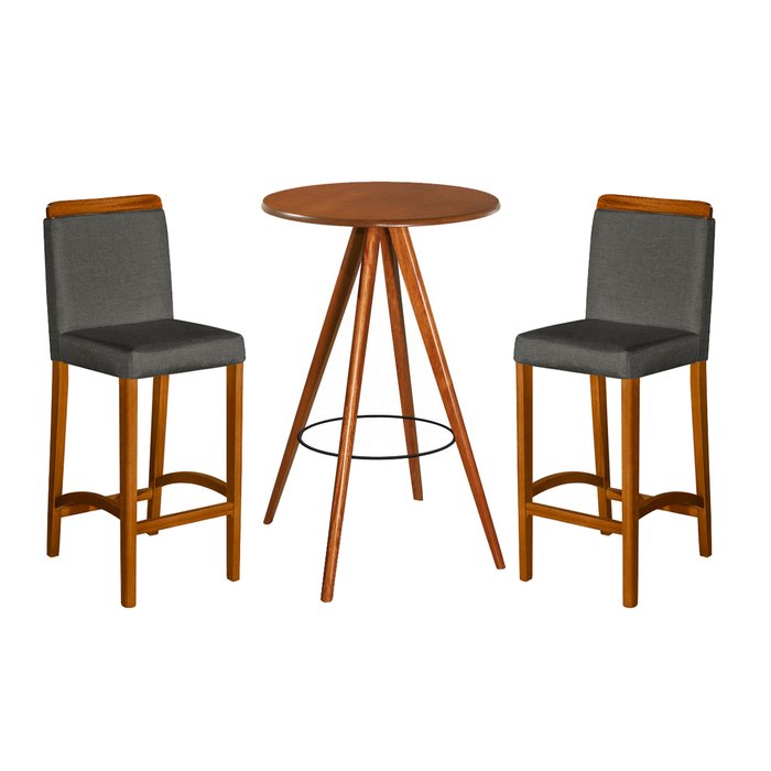 Conjunto Banquetas com Puxador Dubai Pés em Madeira Maciça Sacada Hall com Bistro Moderno Cor Cinza