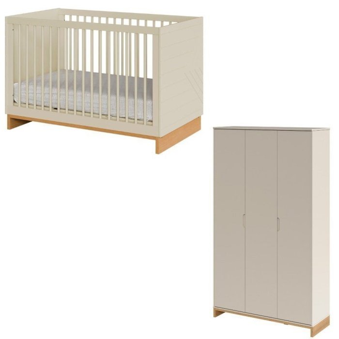 Conjunto Berço 2 em 1 e Cômoda Cubo Areia/Platano