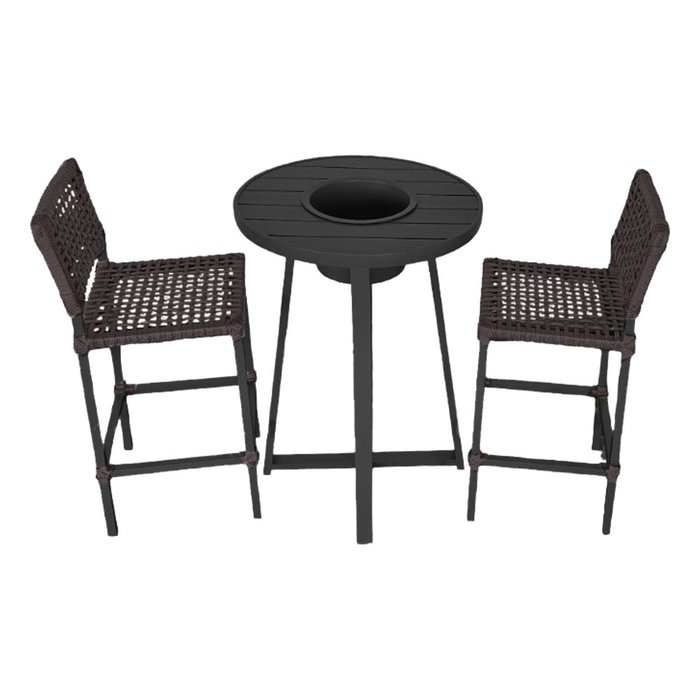 Conjunto Bistrô Champanheira Tampo Ripado e 2 Banquetas França Corda Náutica Marrom MARROM