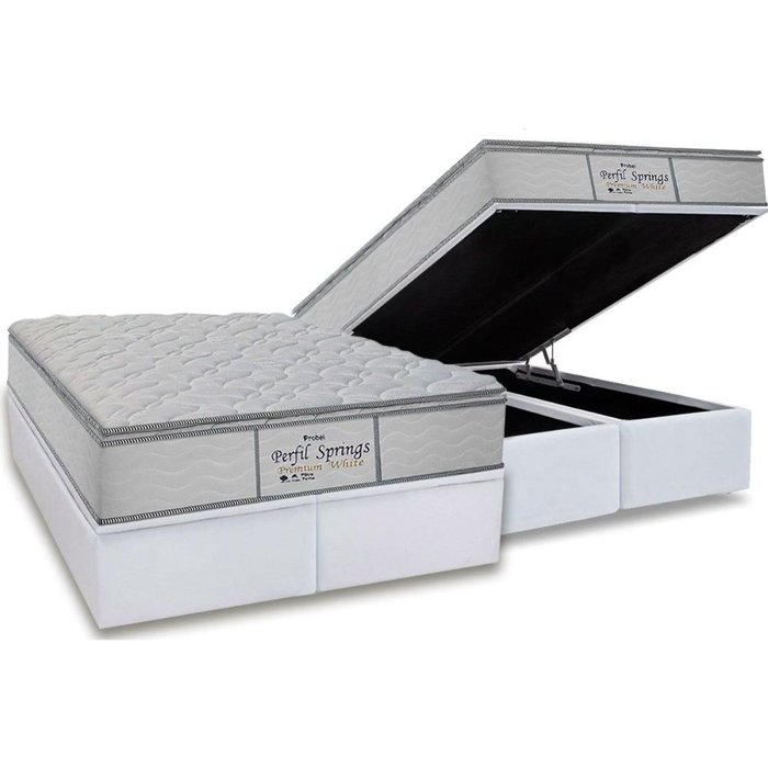 Conjunto Box Baú King: Colchão Molas Probel Ensacadas Perfil Springs Premium White + Base Crc Branco