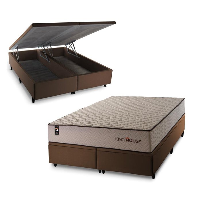 Conjunto Box Baú King San Diego Marrom 193x203x74 Espuma D33 Marrom Liso