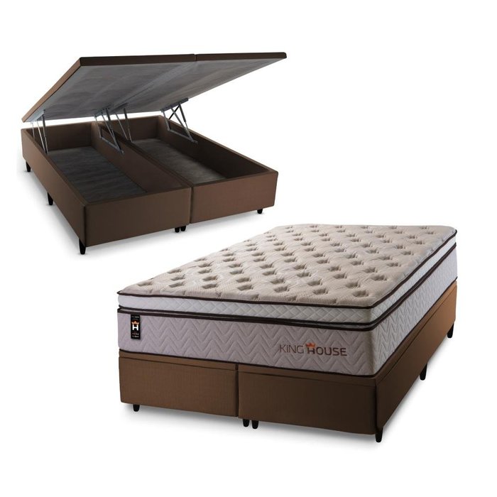 Conjunto Box Baú Queen Liverpool Marrom 158x198x80 c/ Molas Ensacadas