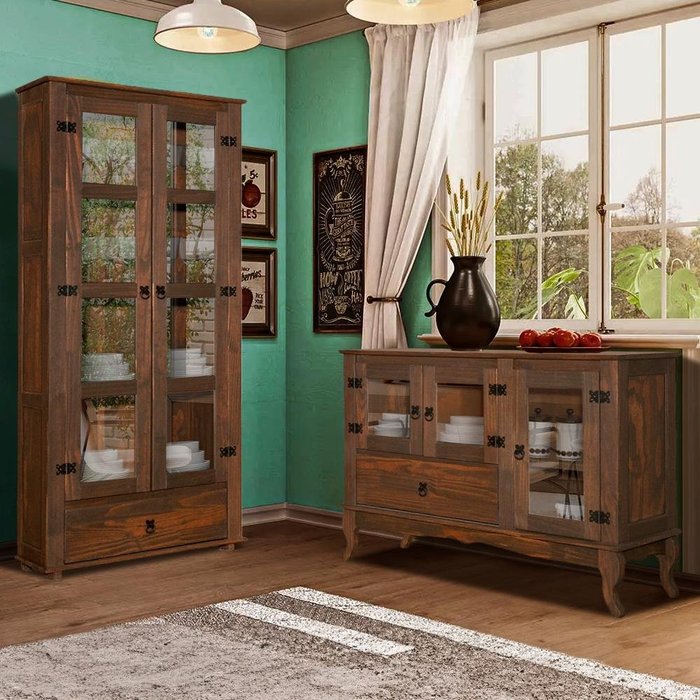 Conjunto Buffet com Cristaleira para Sala de Jantar Madeira Maciça Imbuia Shop Jm