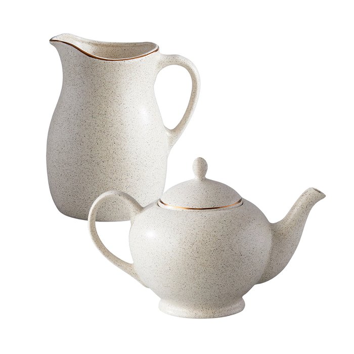 Conjunto Bule e Jarro Cerâmica Orion Reativo Branco 2pçs