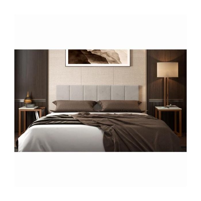 Conjunto Cabeceira 1,40 Bege Claro com Mesa Abajour e Revisteiro Amadeirado/Off Whitemo Off White
