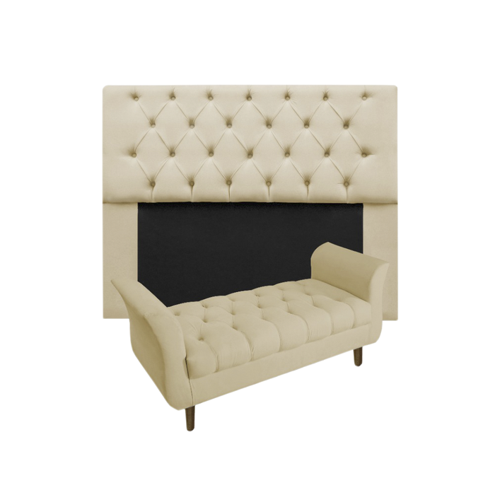 Conjunto Cabeceira Mirage Com Recamier Grécia Casal 140 cm Suede Bege - DL DECOR