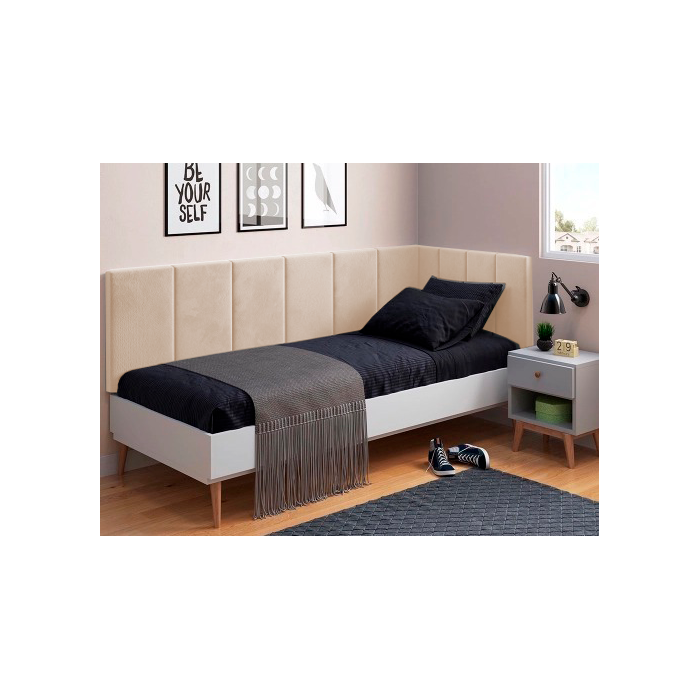 Conjunto Cabeceira Painel Estofada para Cama de Solteiro - Areia