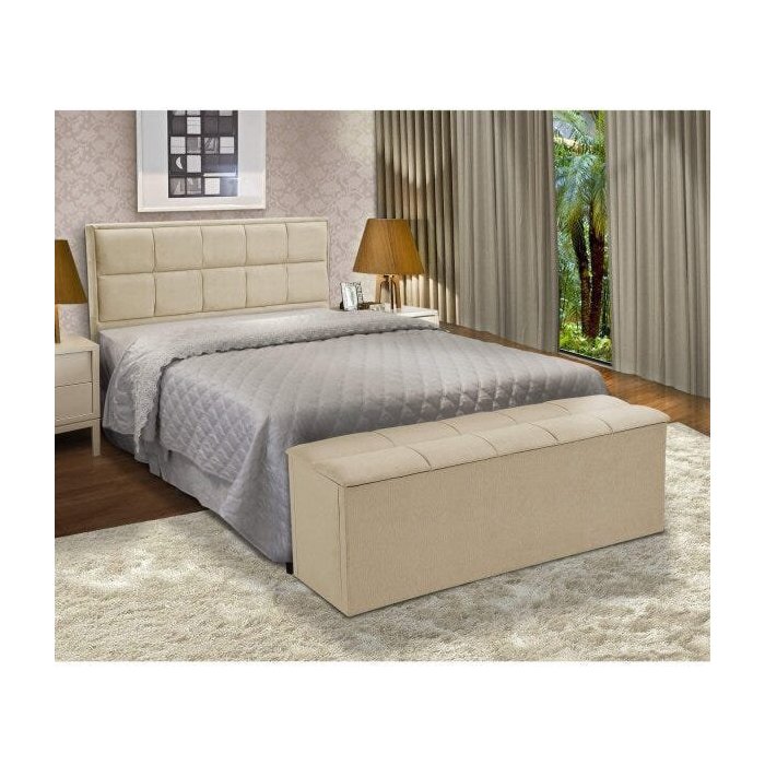 Conjunto Cabeceira Queen Estofada e Calçadeira Baú Espresso Móveis