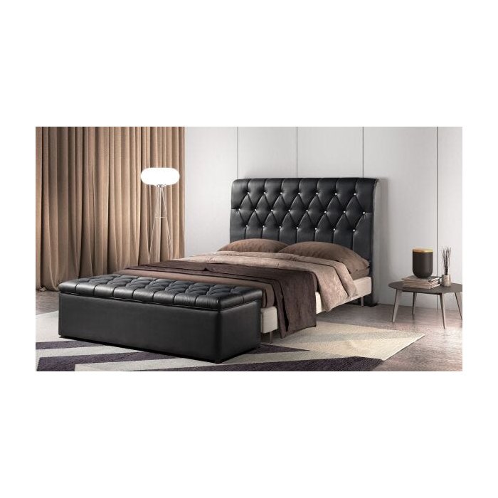 Conjunto Cabeceira queen + Puff Baú Capitonado Com Botão Cristal Courino