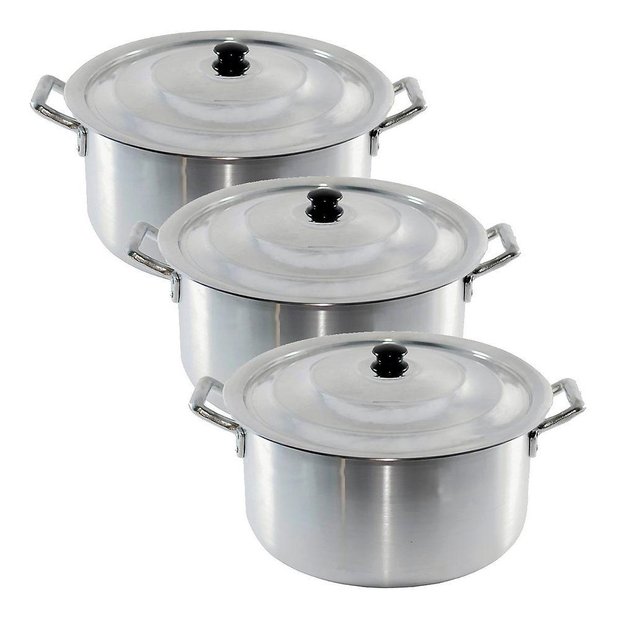 Conjunto Caçarola Hotel Panela Industrial Alumínio 3Peças N3 Conjunto caçarola hotel é a solução, ideal para preparar vários tipos de receitas como arroz, feijão, feijoada, sopas, caldos, frango, doces e outras receitas deliciosas. Ideal para restaurantes, buffets, escolas, hotéis, cozinhas industriais e demais estabelecimentos profissionais. Caçarola em alumínio resistente, de excelente qualidade, material muito popular por oferecer um excelente custo benefício e por permitir um design versátil e prático. Especificações Técnicas: