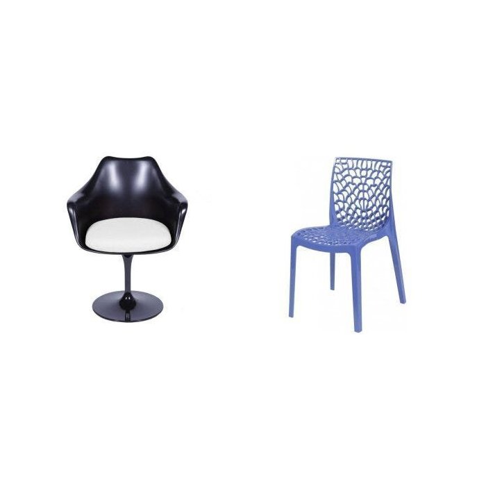 Conjunto Cadeira com Braço e Almofada e Cadeira Polipropileno Vazado Gruvyer Espresso Móveis Preto/Branco/Azul