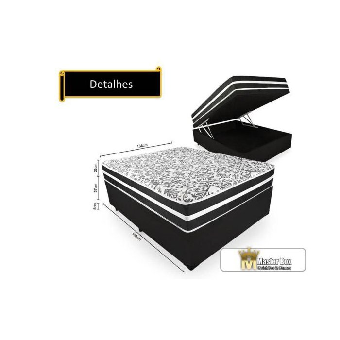 Conjunto Cama Box Baú Casal Premium Inteiriço Corino 1,38x1,88 + Colchão Molas Luxor Black 25 cm - S