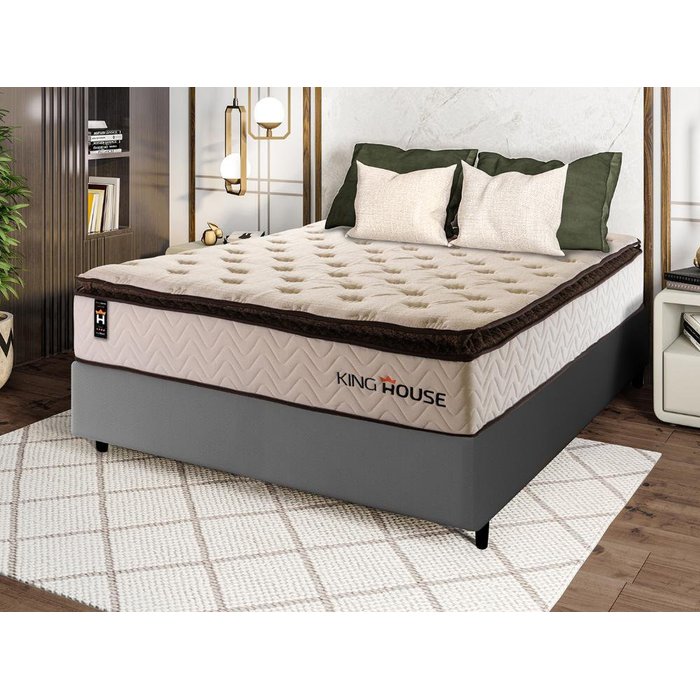 Feito com os mais nobres materiais em sua composição, ele conta com espuma D28 e molas ensacadas. Por ser mais macio, o colchão de molas ensacadas individualmente traz benefícios e ajuda no alinhamento da coluna. O colchão King House acomoda melhor o contorno do corpo, dispondo de forma correta quadris e ombros, expulsando as dores e problemas de coluna.