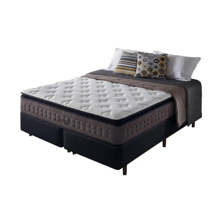 Cama Box King + Colchao Molas Ensacadas Visco Gel Nashville Pillow Top 193x203x67cm