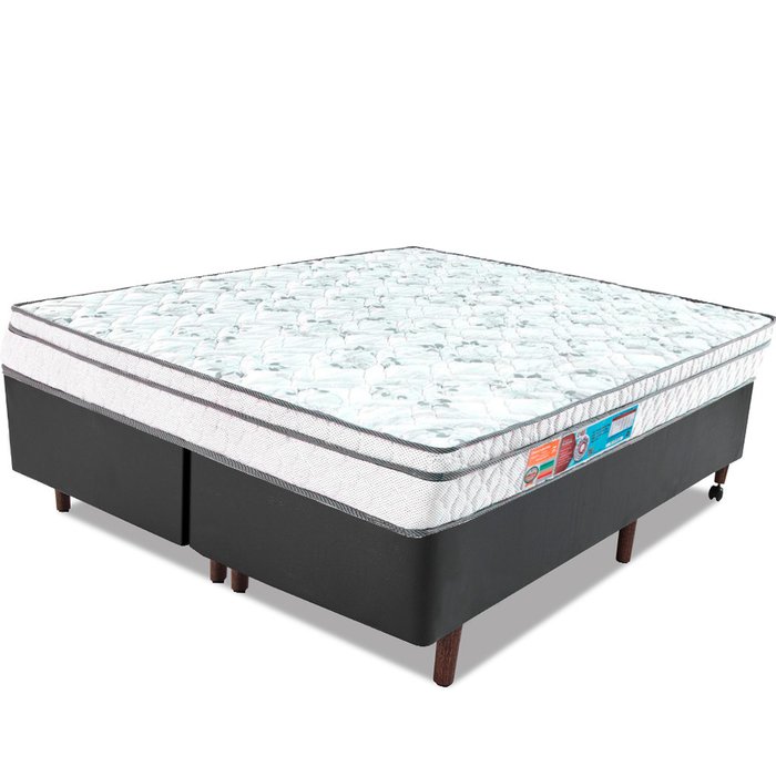 Conjunto Cama Box Queen + Colchão D45 Espuma Ortopédico 158x198cm BF Colchões Preto/Branco