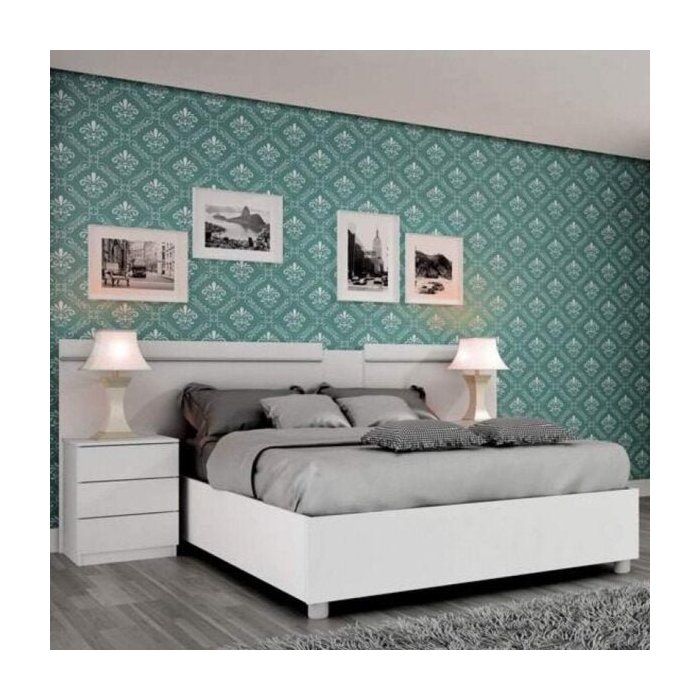 Conjunto Cama Casal e Cabeceira Extensível 2 Mesas de Apoio Móveis