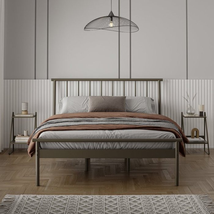Conjunto Cama Queen 2 Mesas de Cabeceira em Aço Begônia CabeCasa MadeiraOriginals Cobre